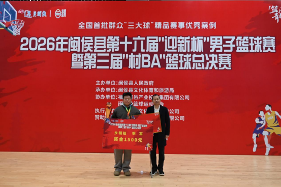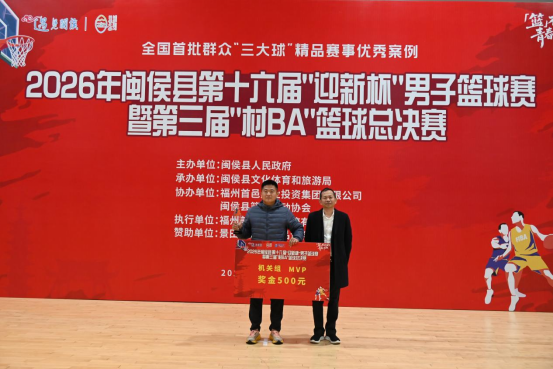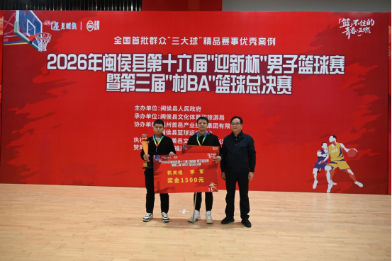 而一场精彩赛事的顺利举办,离不开专业高效的统筹与组织,闭幕式上,赛事的执行单位福州美邑文化交流有限公司凭借全程细致的执行、周密的安排,被闽侯县文化体育和旅游局授予2026年闽侯县第十六届“迎新杯”男子篮球赛暨第三届“村 BA”篮球总决赛【最佳组织者奖】,以表彰其为赛事圆满开展所作出的重要贡献。