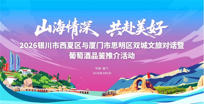 为深入推动东西部文旅产业深度融合,由中共银川市西夏区委员会、银川市西夏区人民政府主办的“山海情深 共赴美好——2026年银川市西夏区与厦门市思明区双城文旅对话暨葡萄酒品鉴推介活动”将于3月6日在福建省厦门市思明区举办。